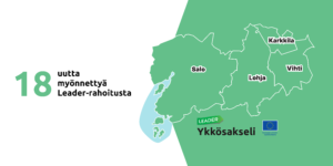 Ykkösakseli ry on myöntänyt Leader-rahoitusta 18 hankkeelle Salossa, Karkkilassa, Vihdissä ja Lohjalla. Hankkeista 12 on