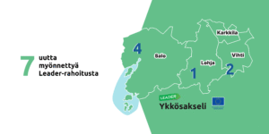 Ykkösakseli on puoltanut Leader-rahoitusta seitsemälle hankkeelle Salossa ja Vihdissä. Hankkeista kolme on elinkeinollisia tukia ja