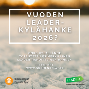 Lisätietoja Vuoden Leader-Kylähankkeesta 2026 antaa järjestökoordinaattori Marianne Liitelä (marianne.liitela@suomenkylat.fi, p. 045 887 1511).
