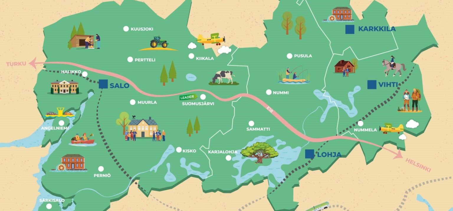 Leader Ykkösakseli on Karkkilassa, Lohjalla, Salossa ja Vihdissä toimiva paikallinen kehittämisyhdistys. Toimimme Leader-ryhmänä kannustaen asukkaita kehittämään omaa asuinseutuaan, lisäämään sen elinvoimaa ja viihtyisyyttä sekä synnyttämään uusia työpaikkoja ja yrityksiä. Toteutamme alueellamme Ykkösakselin paikallista kehittämisstrategiaa. Yhdistyksellämme on tällä hetkellä neljä työntekijää. Toimistomme sijaitsee Salon Suomusjärvellä, mutta käytännön työtä tehdään koko toimialueella.